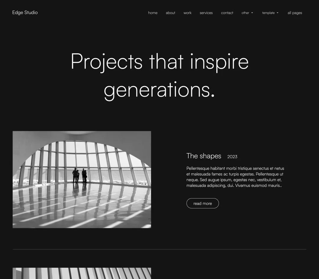 Edge Studio includes a blog and projects collections that are made on the powerful Webflow CMS. This will let you add new content extremely easily.